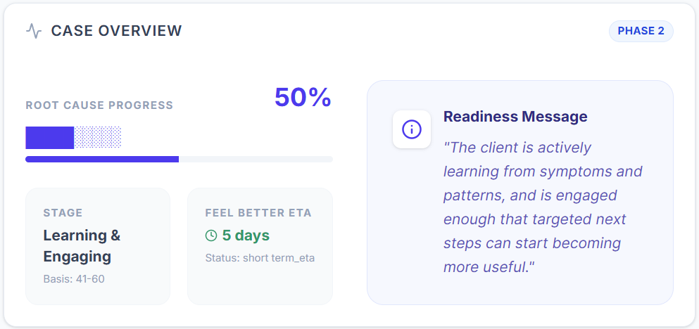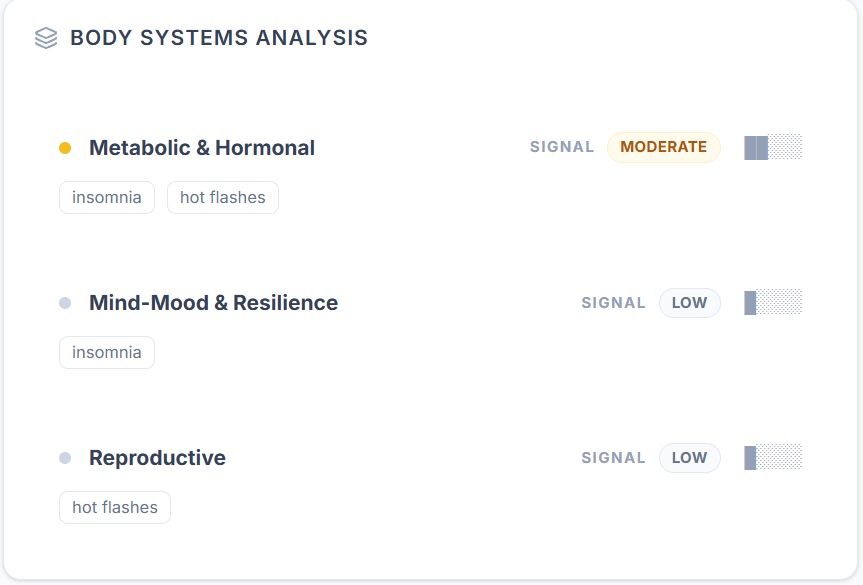 Powered by Tolu's health intelligence engine that structures timelines, symptoms, and lifestyle signals into meaningful patterns.